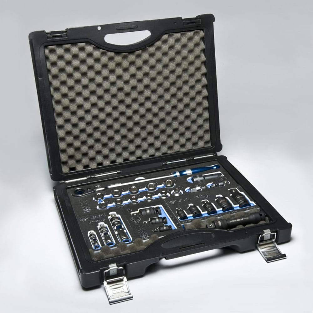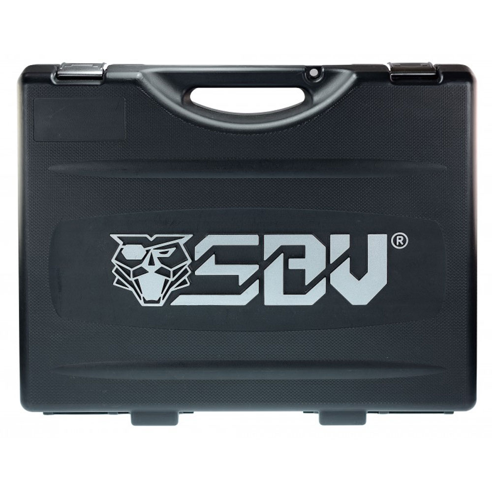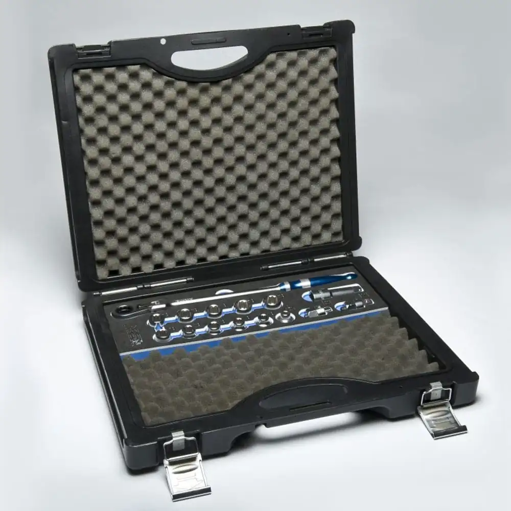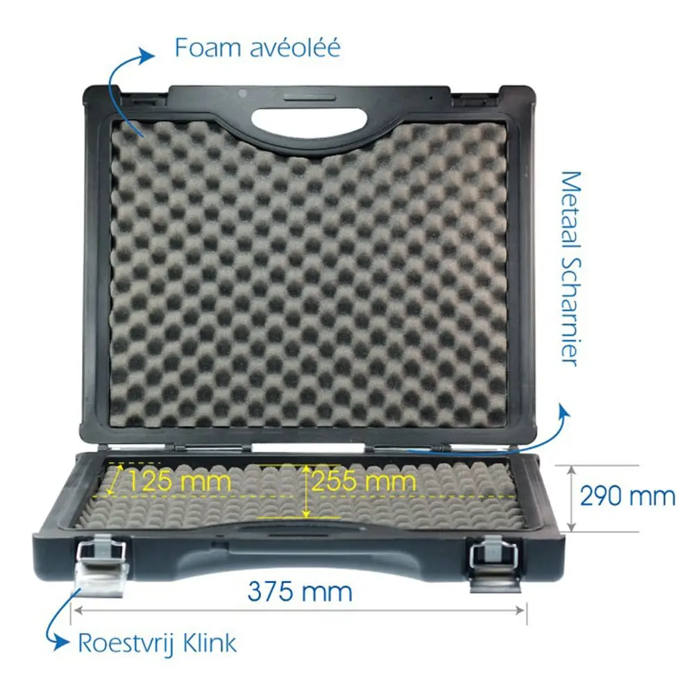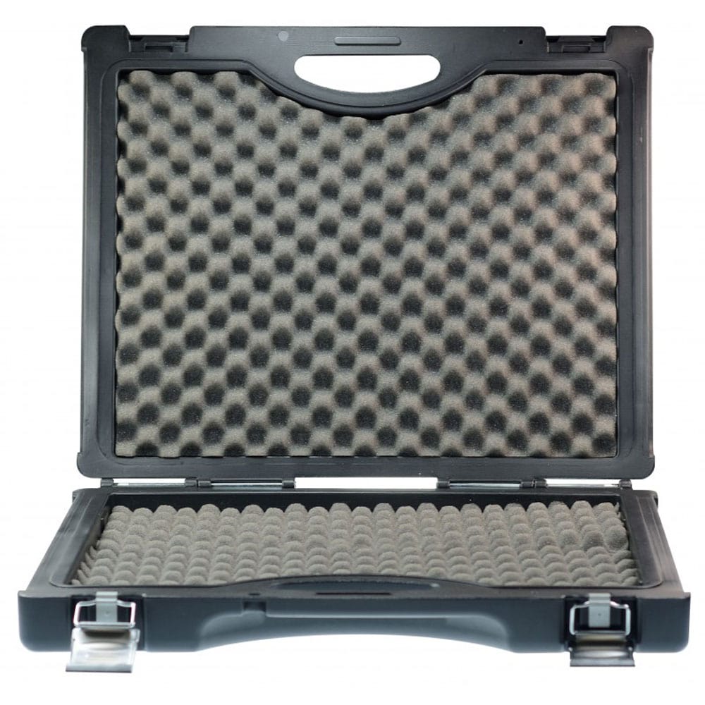 - Black protective case, ideal to transport tools. Its wiving sponge can be cut or take out if necessary, and the latches are made of Stainless Steel, which guarantees lasting and extra resistance.