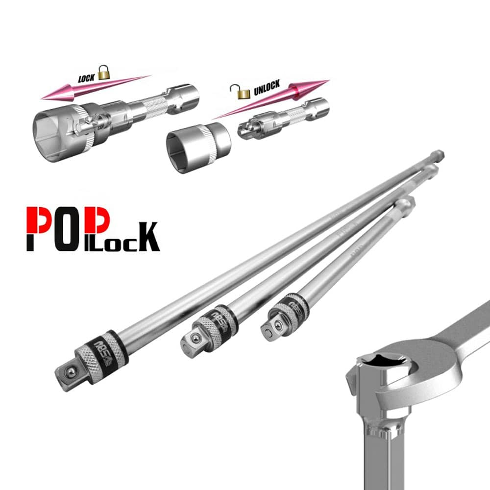 Ce système poplock autobloquant est super efficace que j’ai appris à connaître dans le set moto pour la rallonge. J’ai acheté toutes les différentes tailles pour compléter ma servante. En plus du système autobloquant, les rallonges viennent en 3 tailles différentes et peuvent se coupler pour encore rallonger 😀. Super pour le démontage des boîtes de vitesses sur voitures et camions. J’ai également pris les joints articulés, magnifiques outils. Bravo pour la qualité