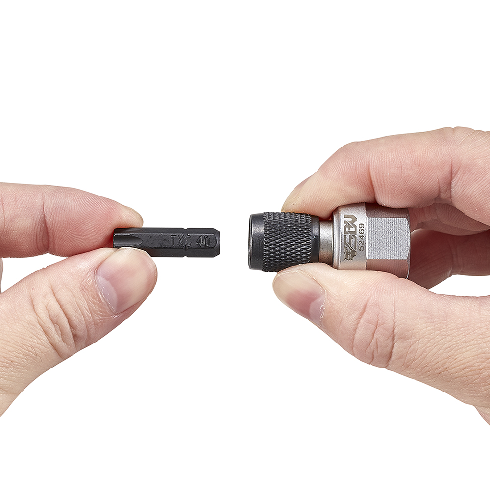Specifically designed for any standard 1/4″ drive bits, the chuck mechanism allows for quick changes, and a firm, wobble-free connection. Unlike traditional bit holders where the spring loaded ball will come out after multiple usage.
