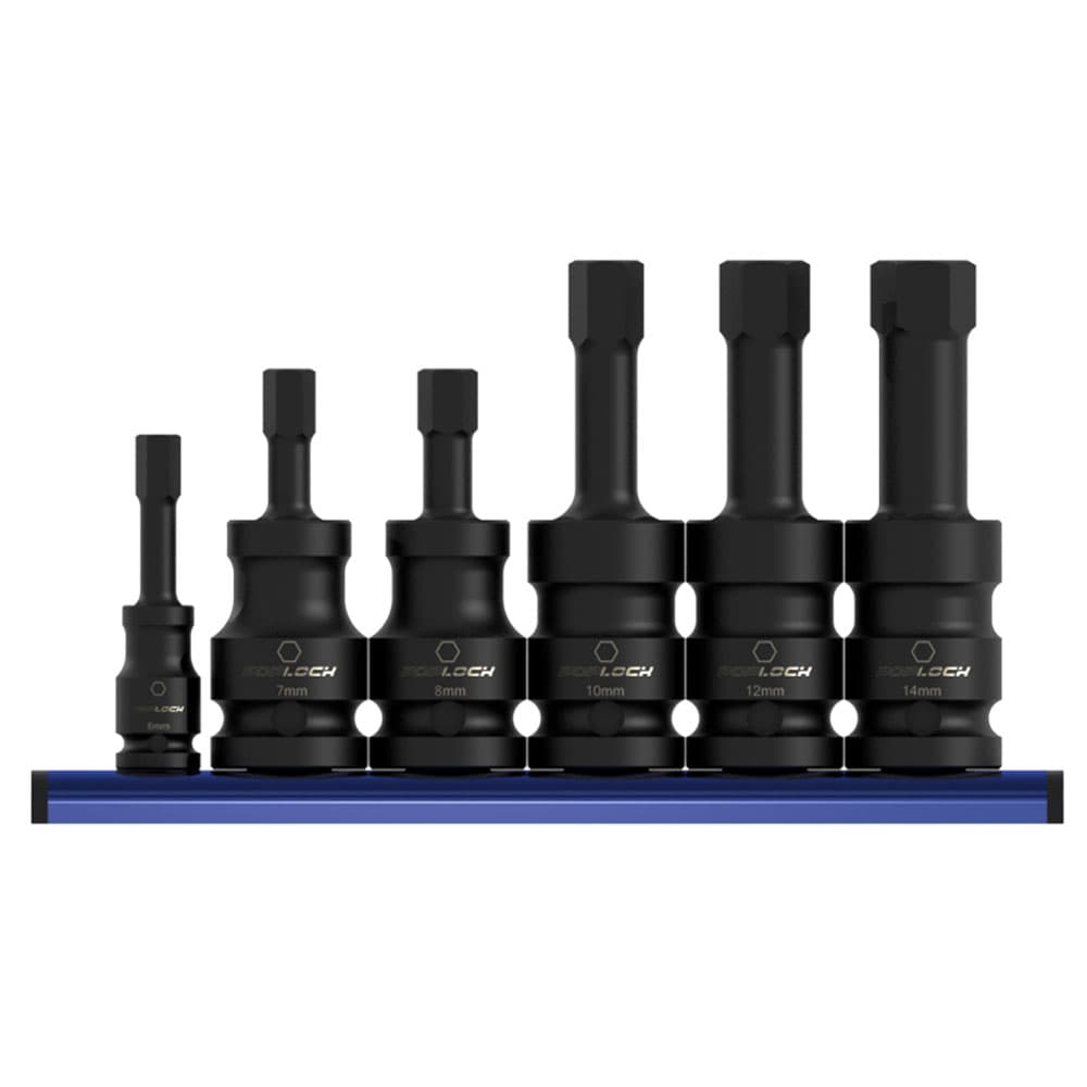 SBV New Hex Pin design securely locks the bit inside the socket for REAL IMPACT MECHANISM. - 1/4″ Dr. – 6 mm 1/2″ Dr. – 7, 8, 10, 12, 14 mm